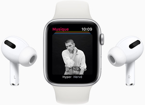 Puce SiP S5 avec processeur bicœur 64 bits jusqu’à deux fois plus rapide que la S3 Puce sans fil W3 Apple Wi‑Fi 802.11b/g/n 2,4 GHz Bluetooth 5.0 Batterie au lithium‑ion rechargeable intégrée jusqu’à 18 heures6